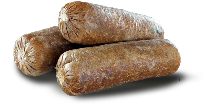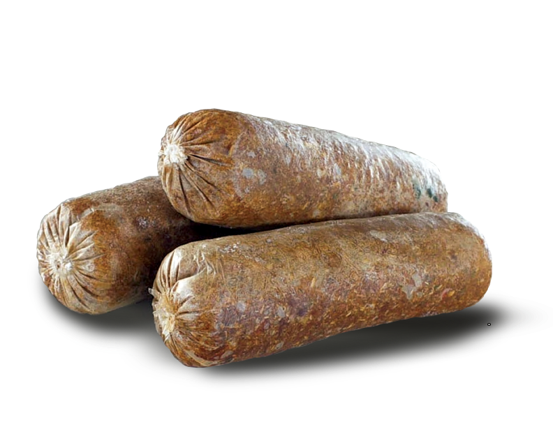 Producimos salchichas individuales congeladas de 100g para perros y 50g para gato.